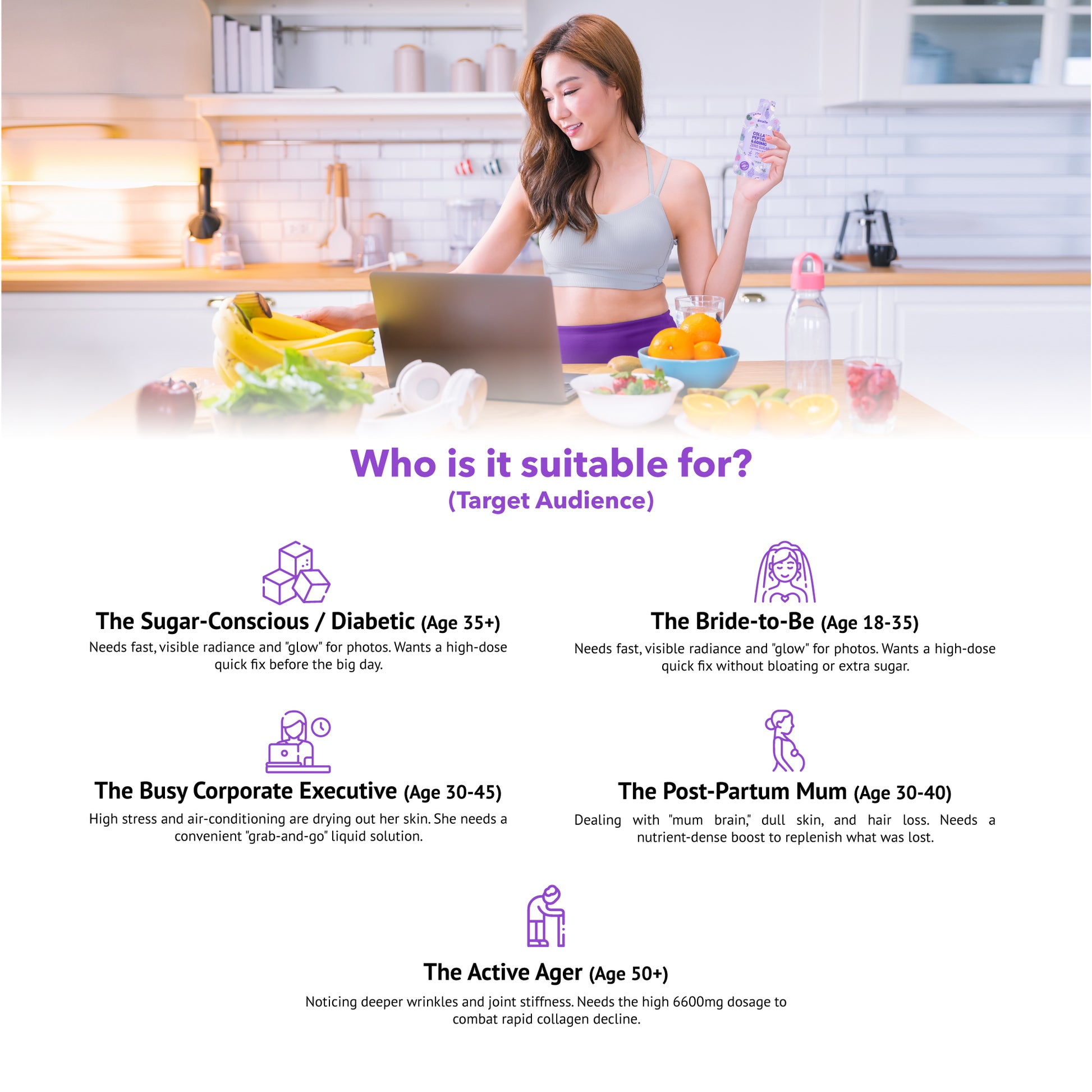 Needs fast, visible radiance and "glow" for photos. Wants a high-dose quick fix without bloating or extra sugar.