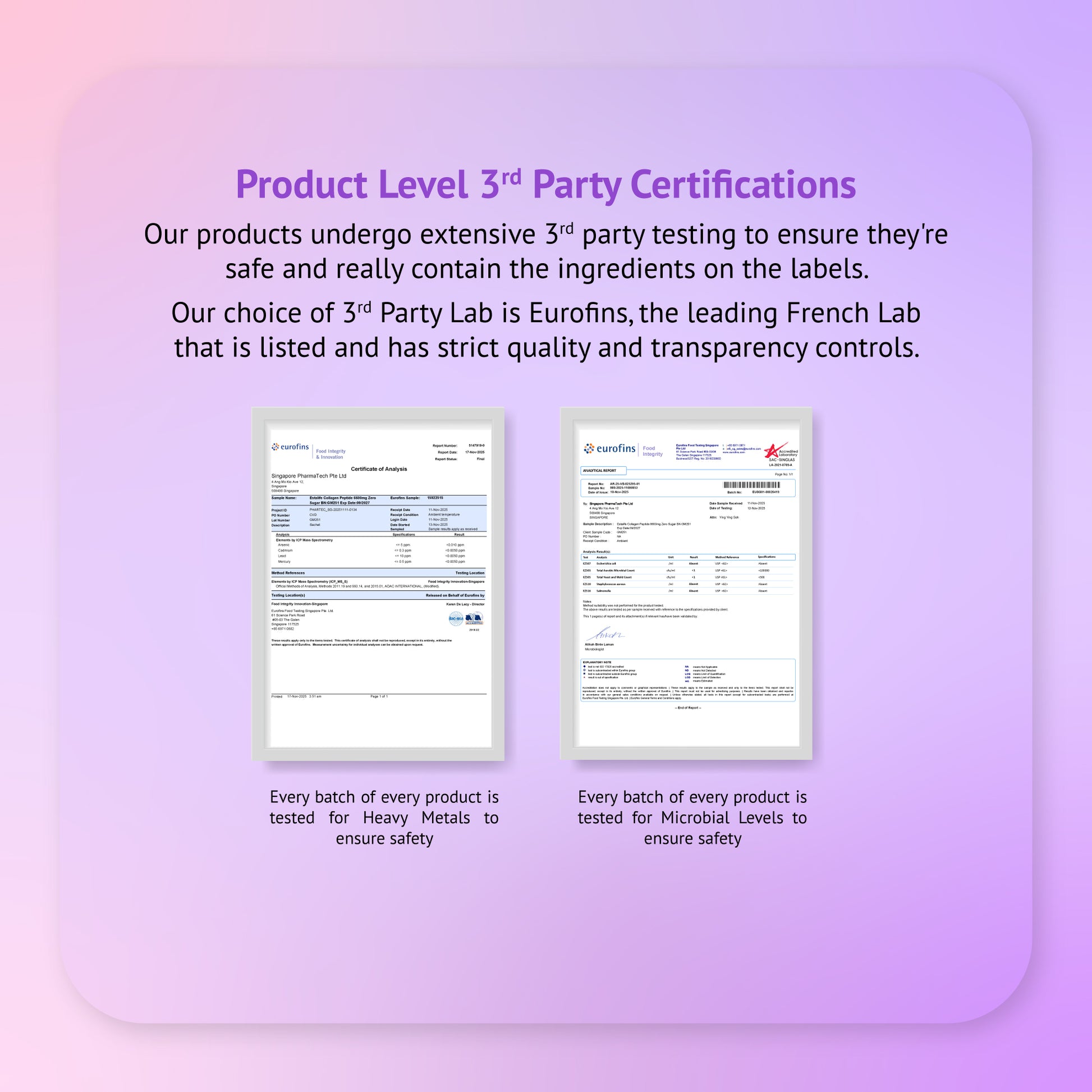 Our products undergo extensive 3rd party testing to ensure they're safe and really contain the ingredients on the labels.