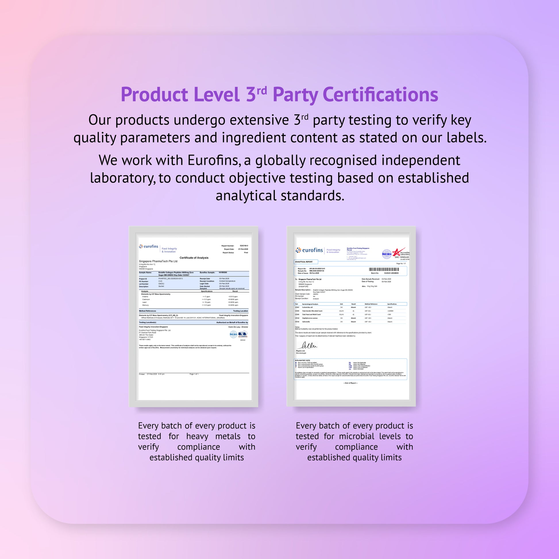 Made in our 100% Singaporean-owned facility. By cutting out the middleman, we deliver premium, clinical-grade supplements directly from our lab to your door at an affordable price.