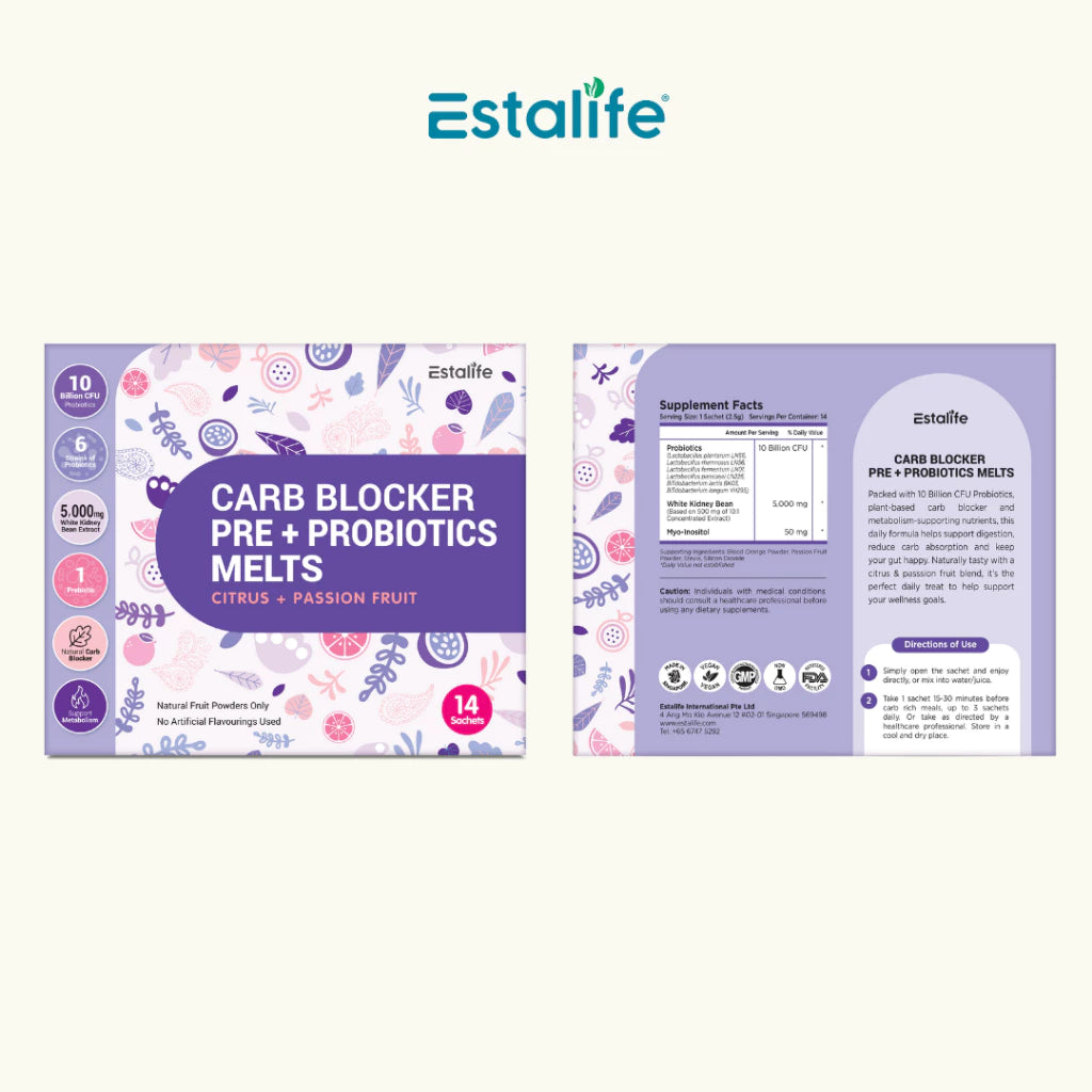 ✨ Choose Estalife Carb Blocker Pre + Probiotics Melts for easy, tasty, daily digestive + carb support — proudly made in Singapore.