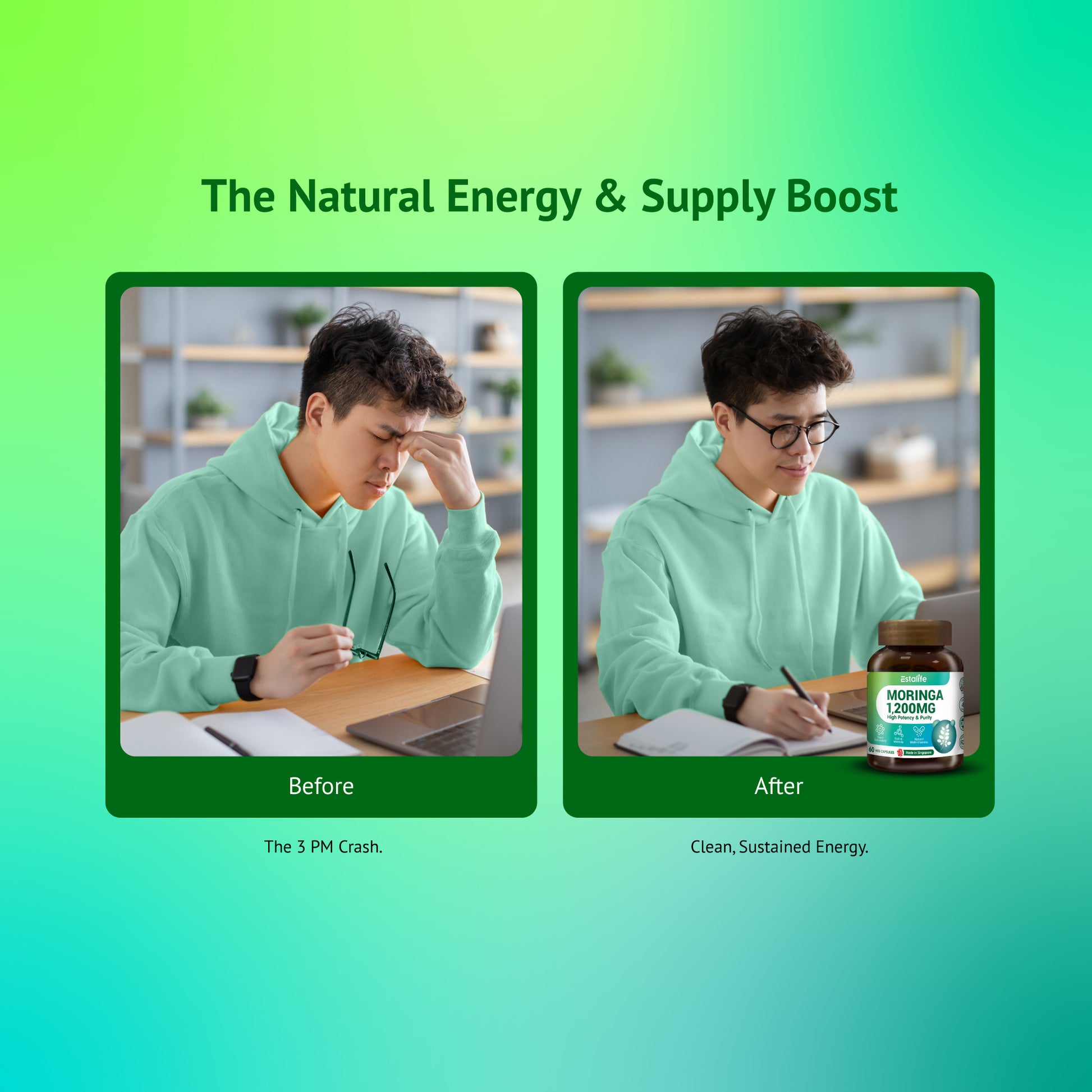 Moringa is a "bio-accumulator," meaning it sucks up toxins from the soil easily. Buying generic cheap Moringa is risky. Estalife offers Singapore Lab-Tested Purity. You get the superfood benefits without the heavy metal risk, in a convenient capsule.