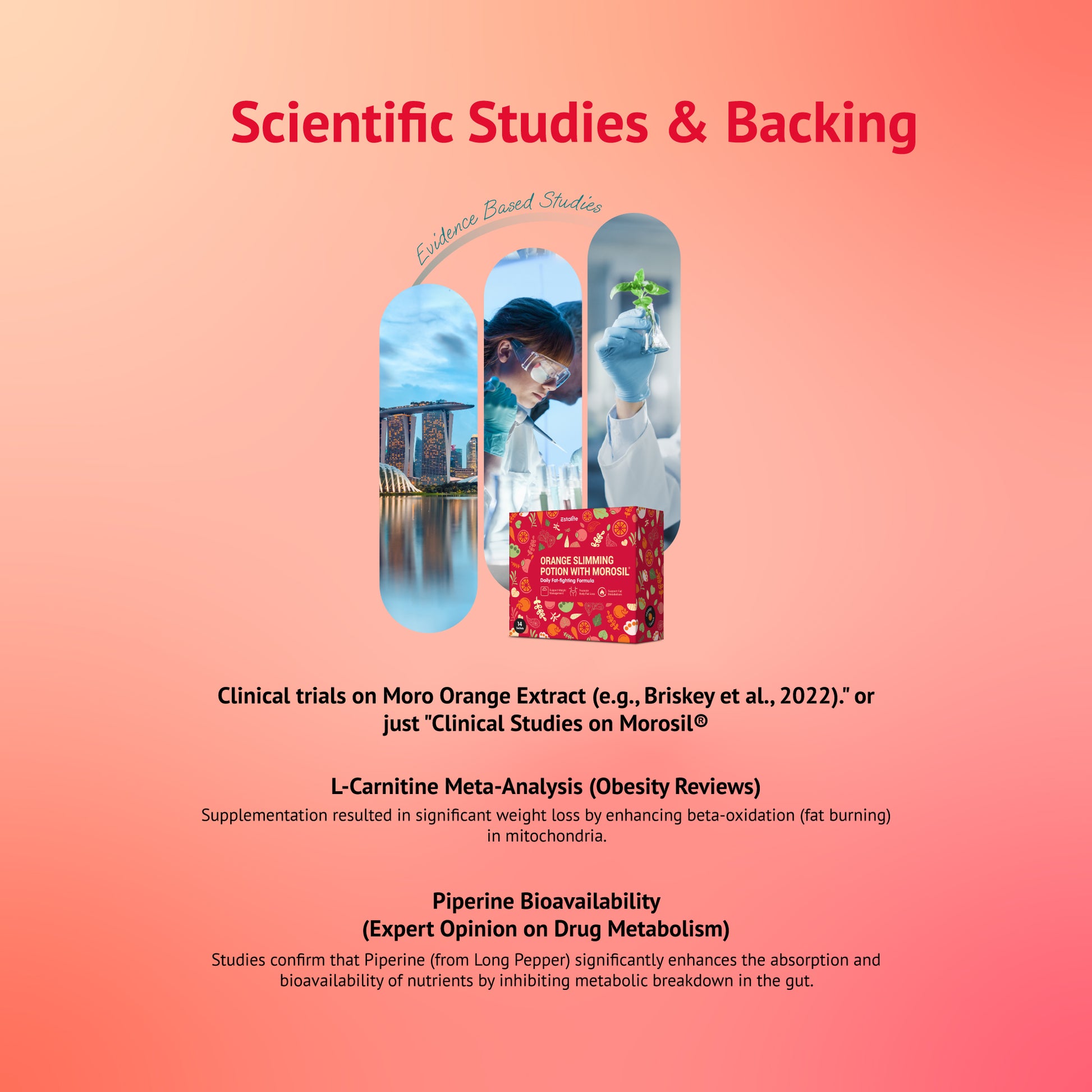 Clinical trials on Moro Orange Extract (e.g., Briskey et al., 2022)." or just "Clinical Studies on Morosil®